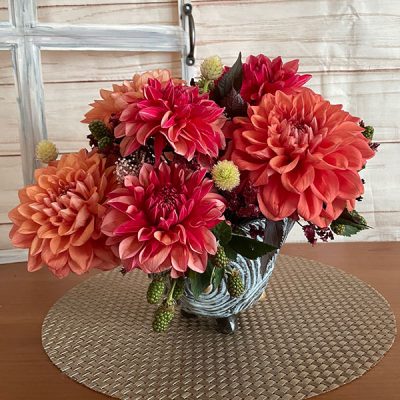 9月 ブリキ又は籠の花器を使ってアレンジ